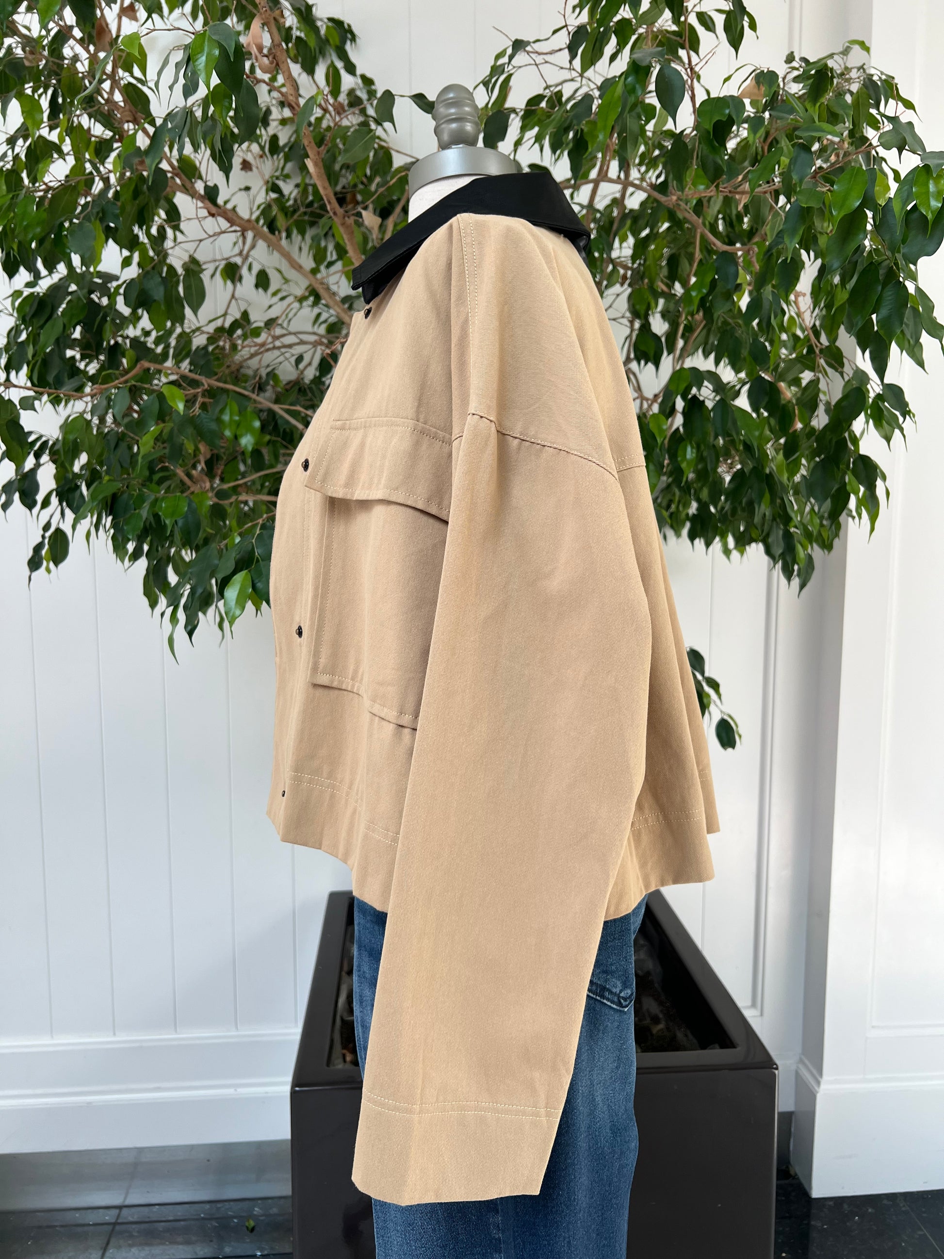 Stay warm and stylish this fall with our City Trendsetter Jacket! Featuring a faux leather collar, oversized twill design, and functional pockets, this jacket is the perfect addition to your wardrobe. With easy-to-use button clips, this jacket is both practical and fashionable. Don't miss out on this essential piece!
