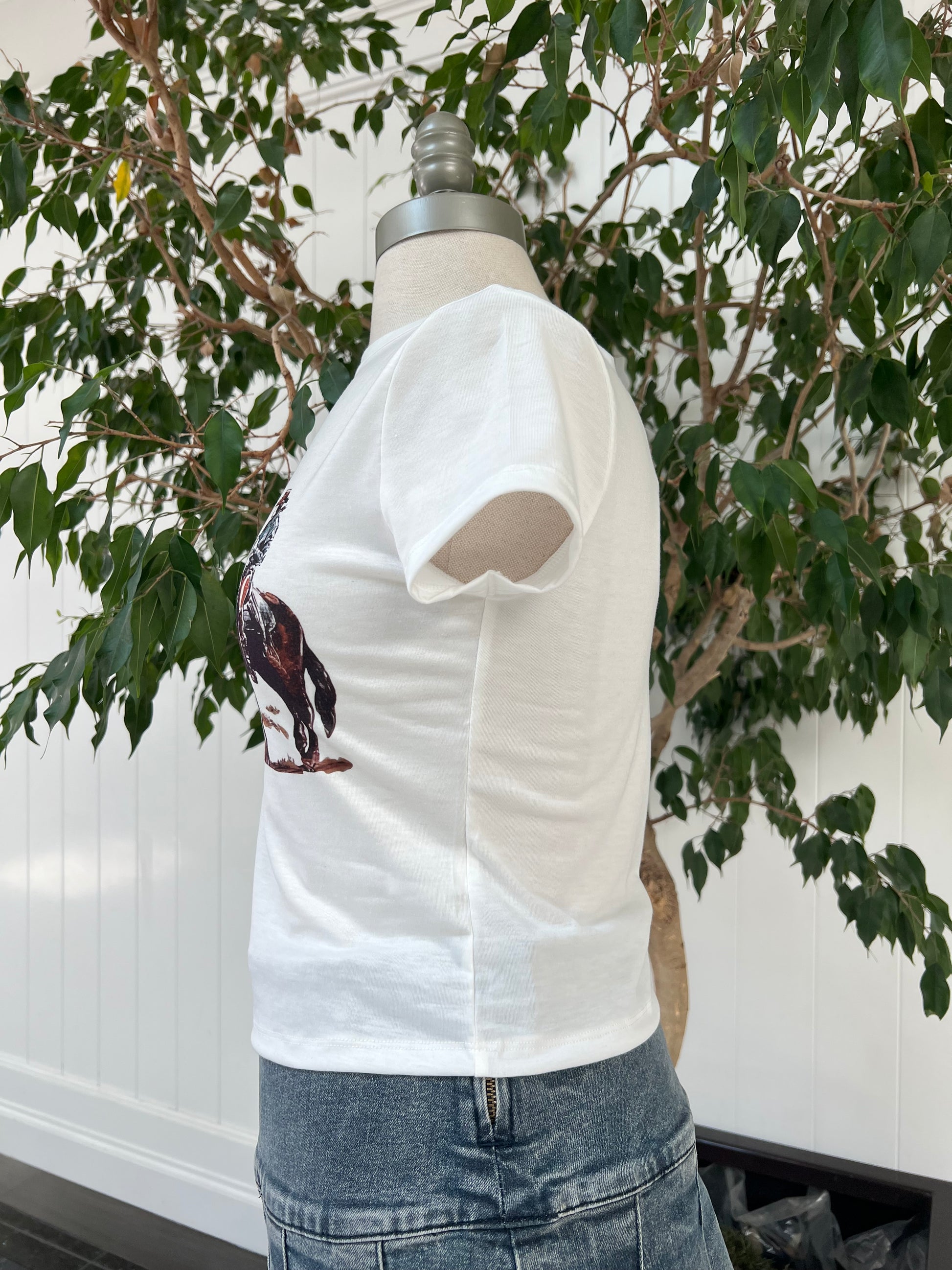 Unleash your inner cowgirl with our Cowgirl Lover top! This stretchy, see-through t-shirt features a bold bulls and cowboy print, perfect for adding a touch of western flair to your casual outfits. Comfortable and stylish, it's the perfect addition to any cowgirl's wardrobe. Yeehaw!