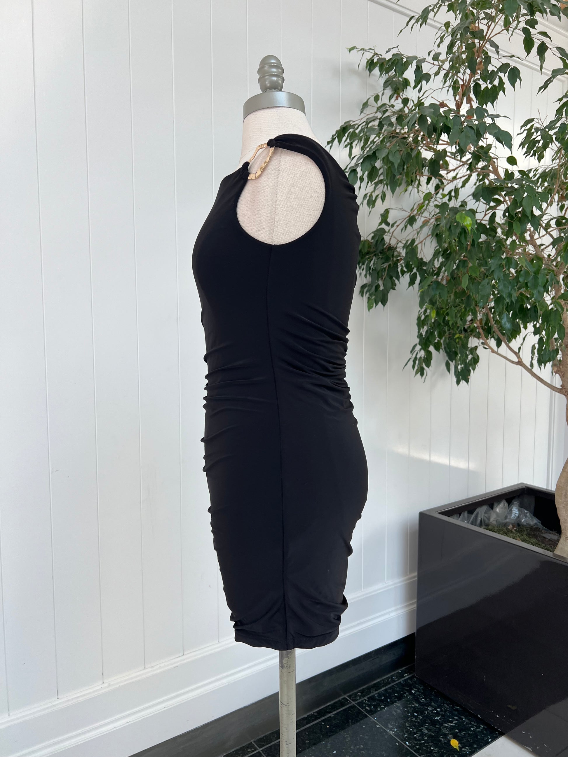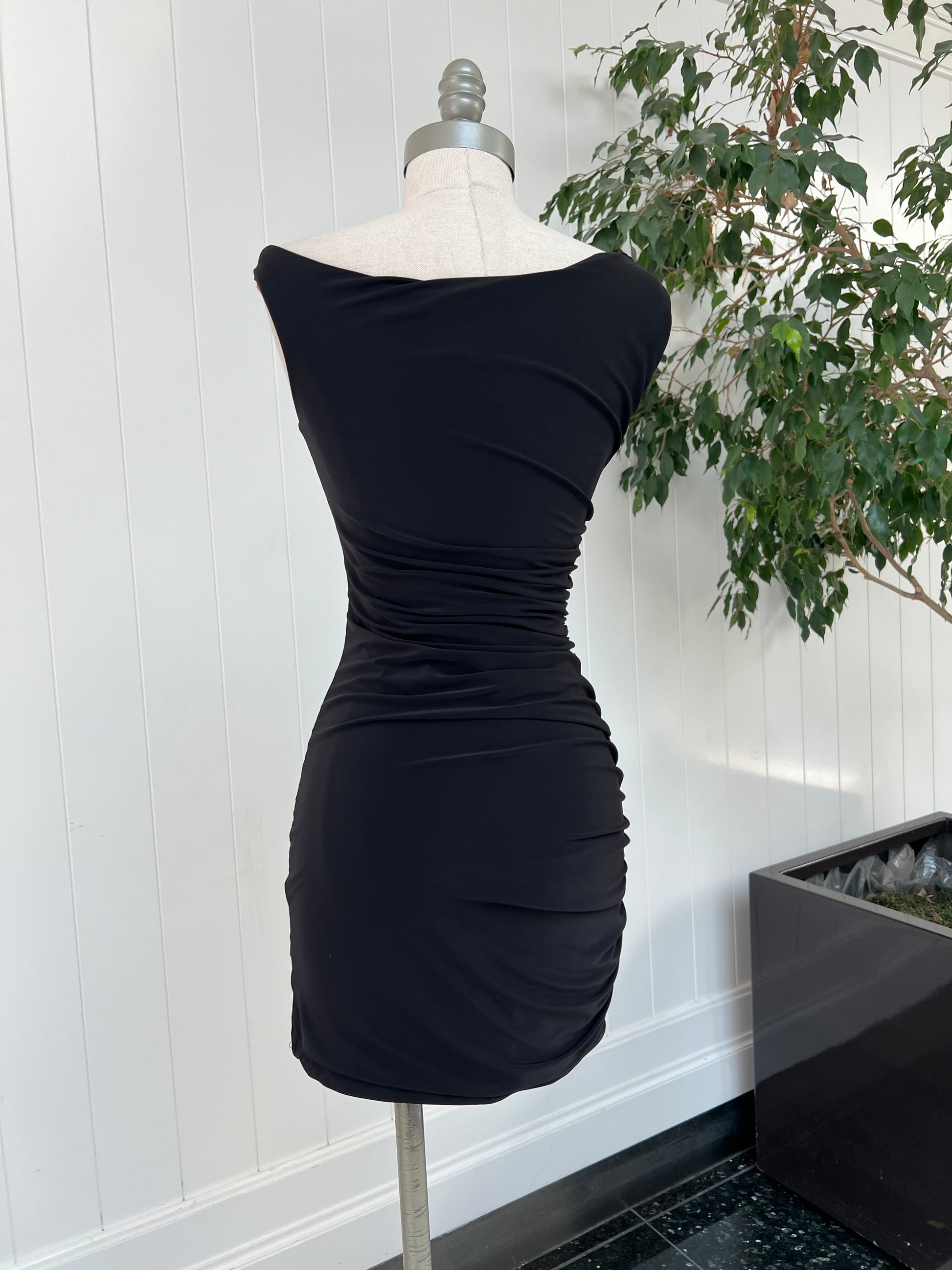 Show off your stunning curves with our Nightlife Date Dress! This double lined, off the shoulder dress features a cute ring detail and ruching on the side for a simple yet sexy look. The moderate stretch ensures a comfortable fit all night long. Perfect for a night out on the town!