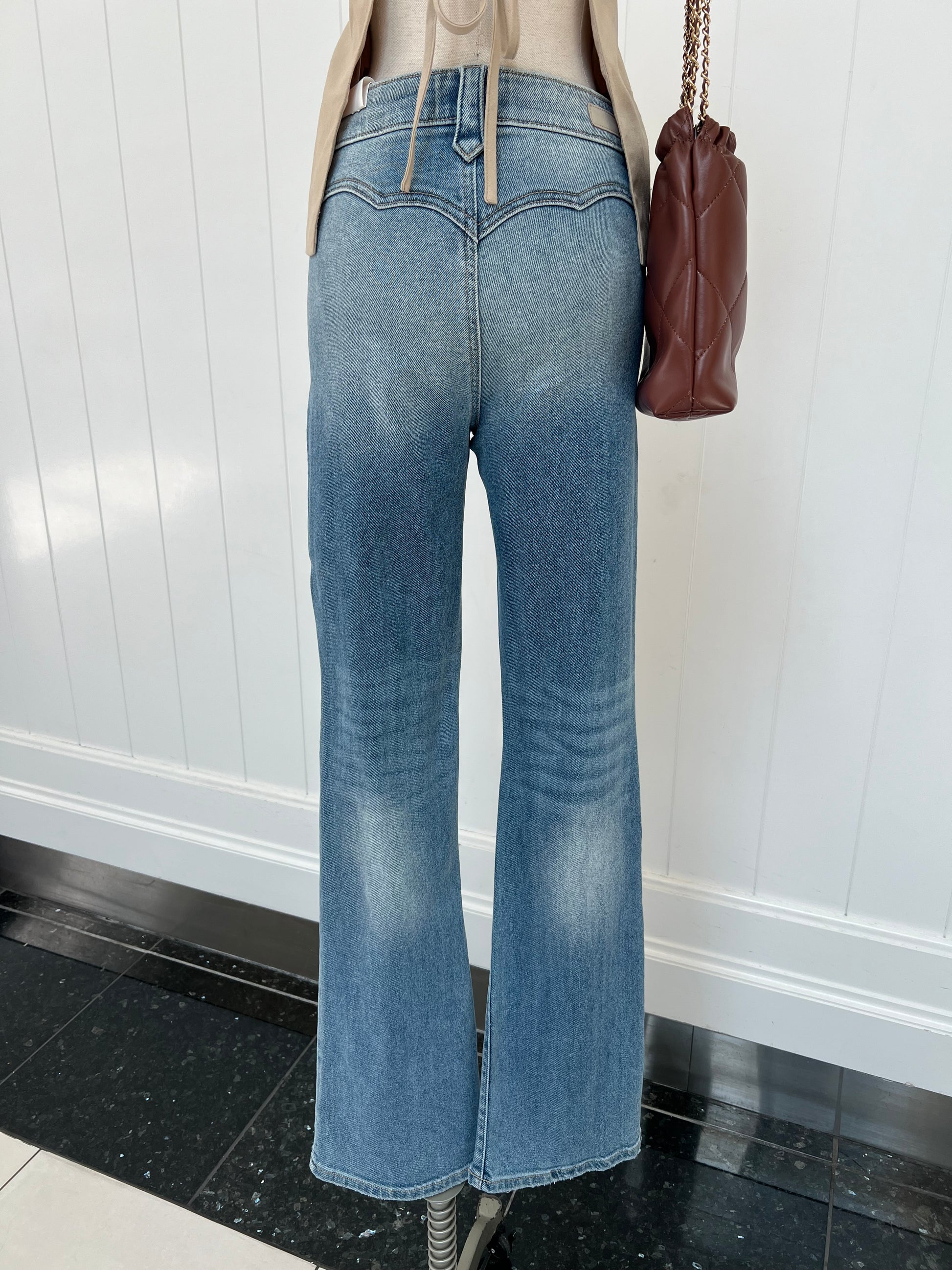 Stay on-trend and comfortable in our Western Style Bootcut Jeans! Featuring a mid-rise, cute arc detail on the back, no back pockets, and distressed front design, these jeans are perfect for rodeo fun. Complete your look with a stylish twist.